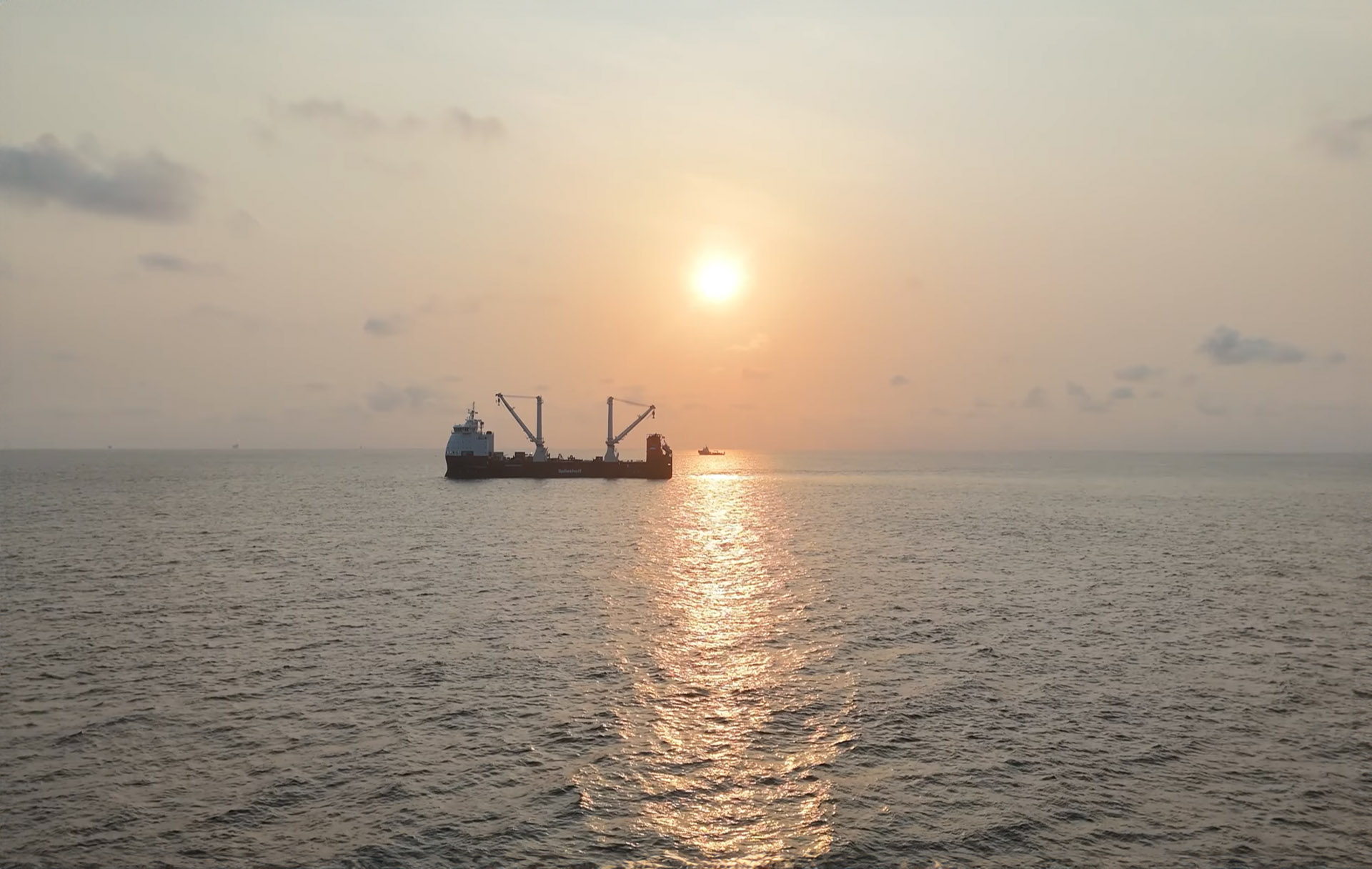 Geocean m’a confié la réalisation du film du projet. Il consistait en la pose d’un pipeline offshore, de fibre optique et d’un câble électrique de puissance, d’une longueur de 1,4 km, jusqu’à la nouvelle jetée de chargement/déchargement, et ce à l’aide d’une barge spécialement équipée.